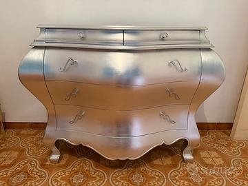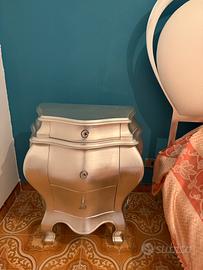 Camera da letto composta da Letto matrimoniale Corte Zari,2 comodini e 1 como’. Rifinitura foglia argento