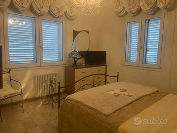 Camera matrimoniale composta da letto in ferro battuto, armadio, comodini e comò