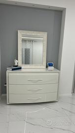 Vendo camera matrimoniale compasta da letto con rete integrata e materasso, 2 comodini, 1 comò e uno specchio. La camera è della Star