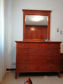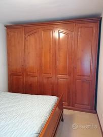 Vendo camera matrimoniale in stile classico, legno massello ciliegio, composta da: - armadio misure L275-H250-P62 - letto matrimoniale con rete a doghe di legno misura L215-H105-P170 - comò con specchio misure L124-H98-P52 - 2 comodini misure L54-H65-P36 Smontaggio e ritiro a carico acquirente.