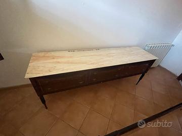 Finiture ottime, con top del comó e dei comodini in marmo. Qualche lieve segno di usura solo sul letto (non visibili mettendo rete e materasso.)