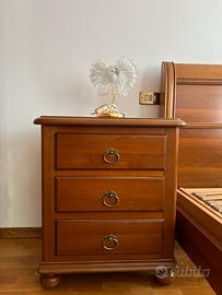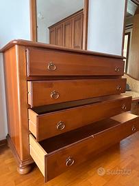 Camera matrimoniale legno massello composta da letto, como’, 2 comodini, specchio