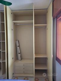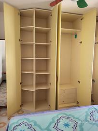 Armadio Giallo: cm.188 parte frontale 4 ante (profondità cm.60) + anta angolare cm.45 (profondità cm.34) altezza cm.264 fascia tamponamento cm.16