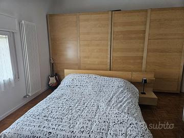 letto due piazze (no materasso), 2 comodini, armadio 4 ante porte scorrevoli (circa 4 metri), già smontata.