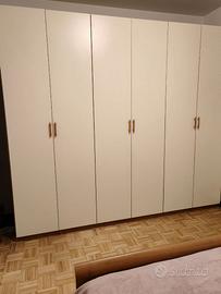 Vendo camera da letto composta da armadio 6 ante, letto matrimoniale provvisto di rete e materasso, due comodini e comò. Ritiro e smontaggio a carico acquirente.