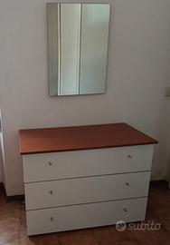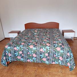 Camera matrimoniale con due comodini, cassettone e specchio. Armadio.