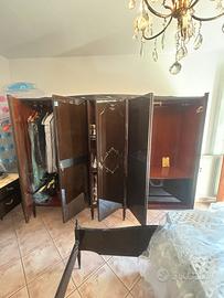 • Grande Armadio a 6 ante: Finitura laccata lucida color testa di moro/nero con eleganti decorazioni serigrafate sulle ante centrali. Interni spaziosi e robusti.