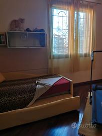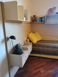 Camera da ragazza tenuta molto bene come da foto, adatta per un ambiente di almeno 12 mq. Composta da doppio letto,armadio 5 ante, boiserie con mensole scrivania con cassettiera e sedia.....