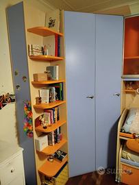camera per ragazzi così come si vede composta da un armadio a 2 ante + ante scorrevoli sopra il letto e cabina armadio angolare.