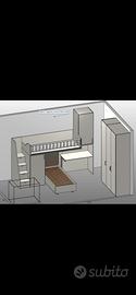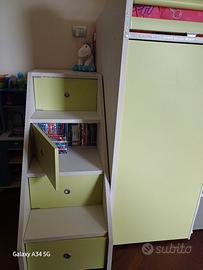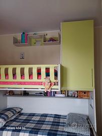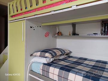Camera a soppalco come nuova del 2017. Colori lime e bianco betulla. Escluso il letto inferiore dalla vendita. si può utilizzare con il letto superiore e mettere una scrivania sotto il soppalco come nella foto, oppure aggiungere un secondo letto. Tenuto benissimo ottima marca.Cabina armadio ampia in basso.
