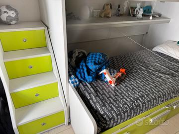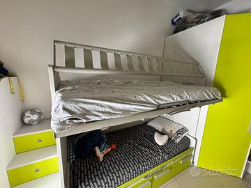 Vendo ponte camera da letto Moretti compact così come in foto composta da letto inferiore estraibile, letto superiore scorrevole ed estraibile per poterlo preparare, compreso di scale con cassetti per salire sul ponte e due cassettoni sotto al letto.