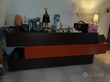 Comò e comodini OPPURE soggiorno Porta TV e complementi ditta Napol arredamenti. Imp. Rovere Moro e Laccato arancione con cassetti ammortizzati.