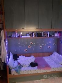 camera completa per ragazzi un buone condizioni con armadio a ponte e letto con cassettiera lunga 210 alta 250
