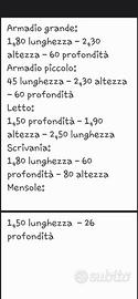 Camera per bambini - 2 letti - armadio singolo - armadio doppio - 2 mensole - 1 scrivania - 2 materassi - lenzuola varie