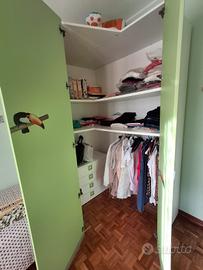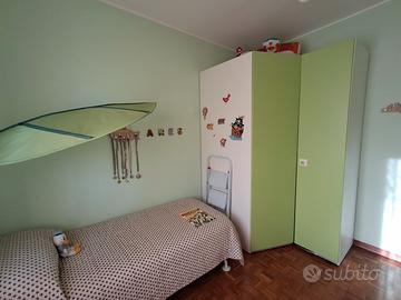 RIMASTO SOLO IL LETTO. Per cameretta bambino/a, 1 letto e 1 armadio angolare. Nel dettaglio: - armadio angolare 1,60x1,14, profondo 90cm da un lato, 60 cm dall'altro, altezza 2,30m; cassettiera interna a 4 cassetti 90x45x67h cm; - letto con testiera verde e ruote (solo lato testiera) bloccabili, con doghe in legno. Il letto si cede completo di rete a doghe (NO materasso). Nel complesso, ottime condizioni. Cameretta di qualità: prezzo originale di circa 4.000 euro (documentazione disponibile), anche se in vendita solo una parte. Smontaggio e trasporto a carico dell'acquirente. Se volete vederla, non esitate a contattarmi. Letto e armadio vendibili anche separatamente.