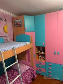 Camera per due bimbi o ragazzi con letto a castello e mobile separato e due scrivanie, smontabile ovviamente