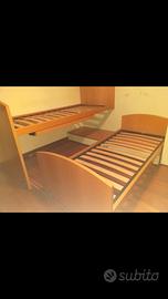 Camera per ragazzi. Due letti von toghe in legno e due scrivanie.
