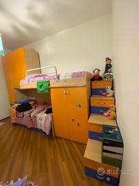 Camera completa di tre reti e due materassi ben tenuti. Terzo letto da estrarre dal cassettone sul pavimento