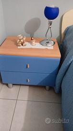 Camera completa di armadio, 2 lettini, comodino, scrivania con sedia, lampadario, lampada e tenda.