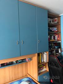 Camera per ragazzi con libreria e scrivania comprese 2 letti di cui uno a scomparsa e armadio molto ampio