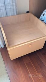 Cassettiera/Comodino a tre cassetti, mobile e con rotelle, che può essere posizionata a piacimento.