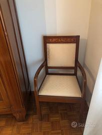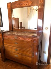 Camera completa in mogano massiccio composta da : 1 armadio con specchio 1 letto 2 comodini 1 cassettiera con specchio 1 como 1 poltrona 2 sedie