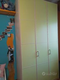 Cameretta ragazzo/ragazza finitura laccato opaco verde mela e acero.
