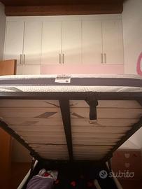 Più materasso nuovo in memory, con due comodini, scrivania, sedia in ecopelle bianca, più libreria.