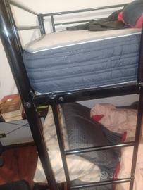 letto a castello in ferro nero completo di materassi ortopedici di cui uno nuovo altro permette condizioni ricondizionato lavato sempre con folletto, scrivania in legno nera con borsa laterale; 2 poltrone da abbinare di cui una ancora imballata.