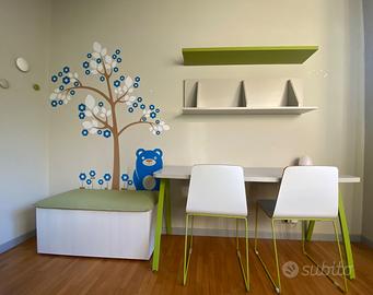 Camera a ponte, con 2 letti, scrivania con 2 sedie, contenitore giochi, mensole libri, appendiabiti. Tutto in ottime condizioni. Materassi non inclusi. Ritiro, smontaggio e trasporto a carico dell’acquirente. Post presente in altri gruppi. Per altre info contattatemi in privato. Grazie!