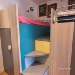 Doimo cityline - modello Tana del lupo. Splendida soluzione per camera ragazzi, con due letti e due cabine armadio molto capienti. Ottime condizioni. Prezzo originale sui 5000 euro acquistata da Marcucci arredamenti a Roma. Non so come si effettua questo tipo di spedizione MISURE Le.misure sono 3.30 m x 1.45 (il letto sopra la cabina armadio quadrata) x 2.00 (il letto sopra la cabina armadio verticale)