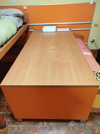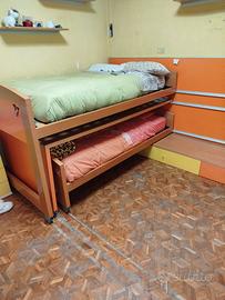 Vendo camera ragazzi giallo e arancio. Letti scorrevoli e scrivania a scomparsa, letti una piazza e mezza. No grandi magazzini ma fatta su misura da artigiano locale. Completa di libreria e cassettiera. No materassi. Smontaggio e trasporto a carico di chi acquista.