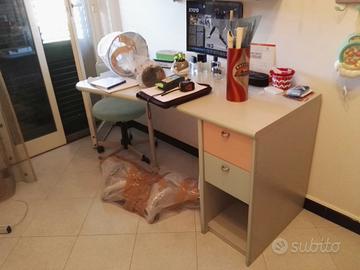 Camera ragazzi con letto a castello robusto, armadio, scrivania, mensole in ottime condizioni. Lampadario e lampade abbinati.