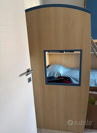 Camera ragazzi con due letti, due scrivanie con cassettiera pet ognuna . Due comodini , ripiani libreria. Complete di materassi .