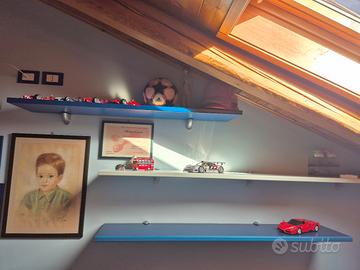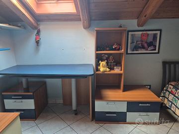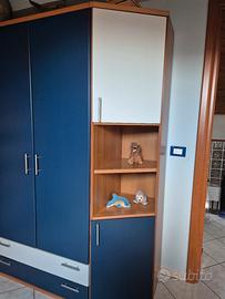 cameretta composta da letto, armadio, mobile comodino con cassetto e scaffalatura, armadio con cassetto e ante libreria.