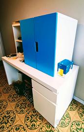Camera ragazzo bianca con pensile azzurro e scaffale bianco, composta da: Armadio Serie Vihals ikea con tre ante, quella centrale a specchio - profondità 60 cm. Larghezza 125 cm. h. 236 cm. Scrivania serie Malm ikea - profondità 65 cm. Lunghezza 140 cm. h. 73 cm Pensile Serie Vihals ante azzurre - larghezza 60 altezza 64 profondità 51 cm. Pensile aperto Serie Vihals - profondità 30 larghezza 60 altezza 64 cm. Letto Serie Vihals con secondo letto a scomparsa e contenitore estraibile in testiera - lunghezza 236 cm. larghezza 97 cm. h. 1 mt. Mensola Bianca lunghezza 110 spessore 5 cm vendo per trasferimento