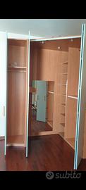 Camera da letto ragazzo completa di : -Cabina armadio -Rete singola -Parete attrezzata porta mensole + mensole -Comodino -Scrivania + sedia Conservata generalmente in buone condizioni, visionabile già smontata presso il nostro mercatino .