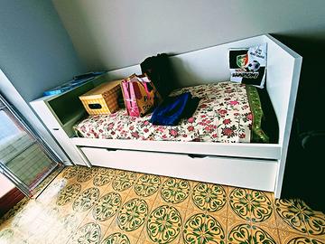 Letto Serie Vihals con secondo letto a scomparsa e contenitore estraibile in testiera - lunghezza 236 cm. larghezza 97 cm. h. 1 mt.