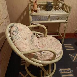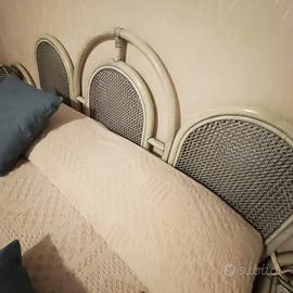 letto matrimoniale + 2 comodini + consolle specchiera + lampade + poltrona tutte fatte con rattan invecchiato verde .Usata come seconda camera quindi ottime condizioni .Nel caso si vendono anche articoli separati