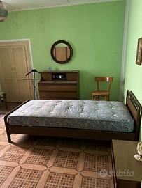 Vendo camera singola composta da letto con materasso, comodino, specchio, porta abiti, sedia, armadio e cassettiera. Come nuova usata pochissimo.