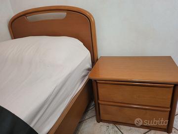 Vendo letto singolo in ciliegio (legno massiccio) misure 90x200 cm h. testiera 87 cm, e comodino abbinato misure 58x42 cm h. 42 cm composto da 2 cassetti € 70,00. Tutto è in ottimo stato, se serve regalo materasso come nuovo.