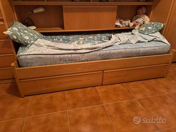 •letto singolo estraibile (materasso incluso) con ruote e cassetti