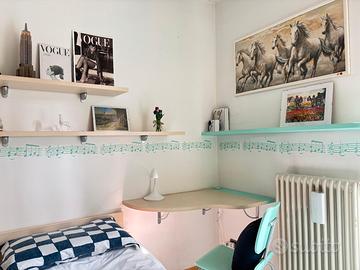 arredo camera singola, letto 80x190 con ruote, comodino con ruote, libreria, mensole e tavolo scrivania. ritiro zona Mestre altre informazioni su richiesta
