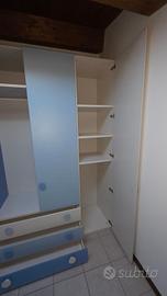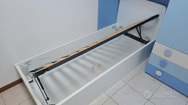 camera singola per ragazzi con letto singolo contenitore e materasso. già smontata. un cassetto sarebbe da sistemare.
