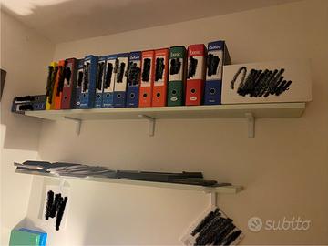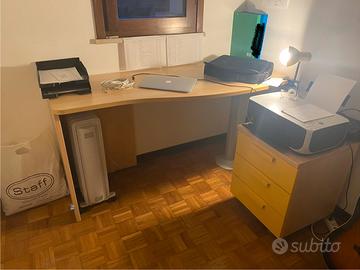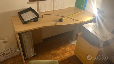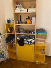 Vendo camera con letto (compreso di materasso e comodino) una piazza e mezza (non visibile in foto) Armadio a 4 ante Libreria con 3 cubi doppi da appendere Scrivania con cassettiera e poltrona Mensole