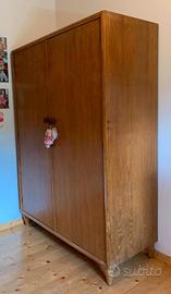 Camere singola in legno vintage: letto, materasso, comodino, scrivania, armadio.