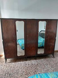 Vendo Camera letto risalente anni 40-50 conservata in buone condizioni. In Legno composta da: Schienale/sponde Letto Largh. 1,65mt/Lungh. 1,95mt con comodini Largh.0,57mt - Mobile cassettiera 1,55x0,50H0,8mt - Armadio con specchi 2,4x0,6H1,9mt