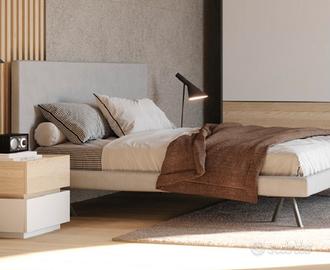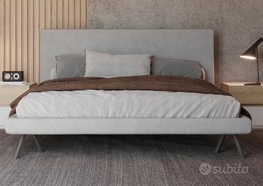 -Letto KUDO in tessuto o ecopelle (L 132 x P 203 x H 95 cm. Rete: 120 x 190 cm);
