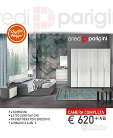 Camera da Letto Composta da Armadio 6 ante battenti: L.240 H.236 P.52 cm Comodini 2 cassetti apertura laterale: L.49 H.41 P.38 cm Comò 3 cassetti apertura laterale: L.105 H.75 P.45 cm Specchiera comò Letto matrimoniale contenitore: L.170 H.85 P.205Cm