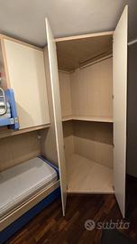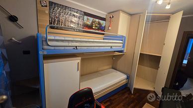 Vendo splendida cameretta modello genialponte in ottime condizioni composta da grande cabina armadio 2 letti a castello di cui il superiore estraibile, 2 ampi cassettoni eventualmente sostituibili con terzo letto, 2 capienti pensili e scala di accesso a gradoni in legno. La cameretta e' gia smontata ed eventualmente a cifra da concordare si rende disponibile tecnico della ditta per rimontaggio.